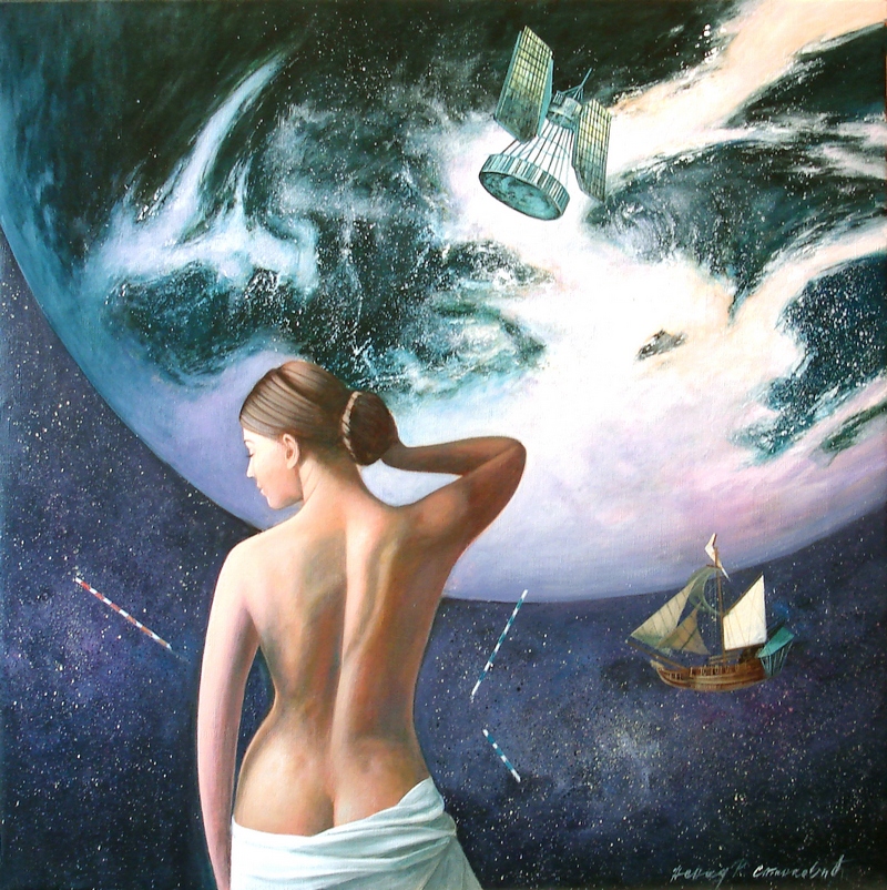 Venerijanska lepota u kosmosu 2, 60×60 cm, kombinovana tehnika, 2012.